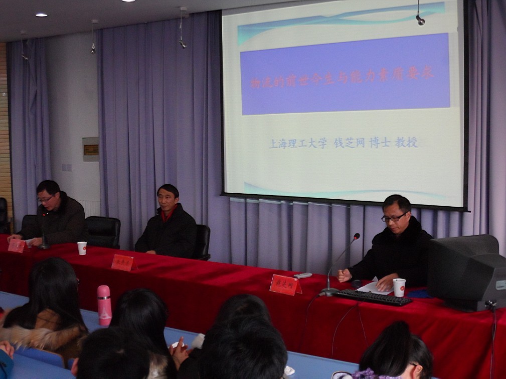 1月5日下午,上海理工大学钱芝网教授应邀在春晖校区阶梯教室为公司物流专业近两百位师生作了一场题为《物流的前世今生与人才能力素质要求》的专题讲座,讲座由蒋成忠副经理主持。