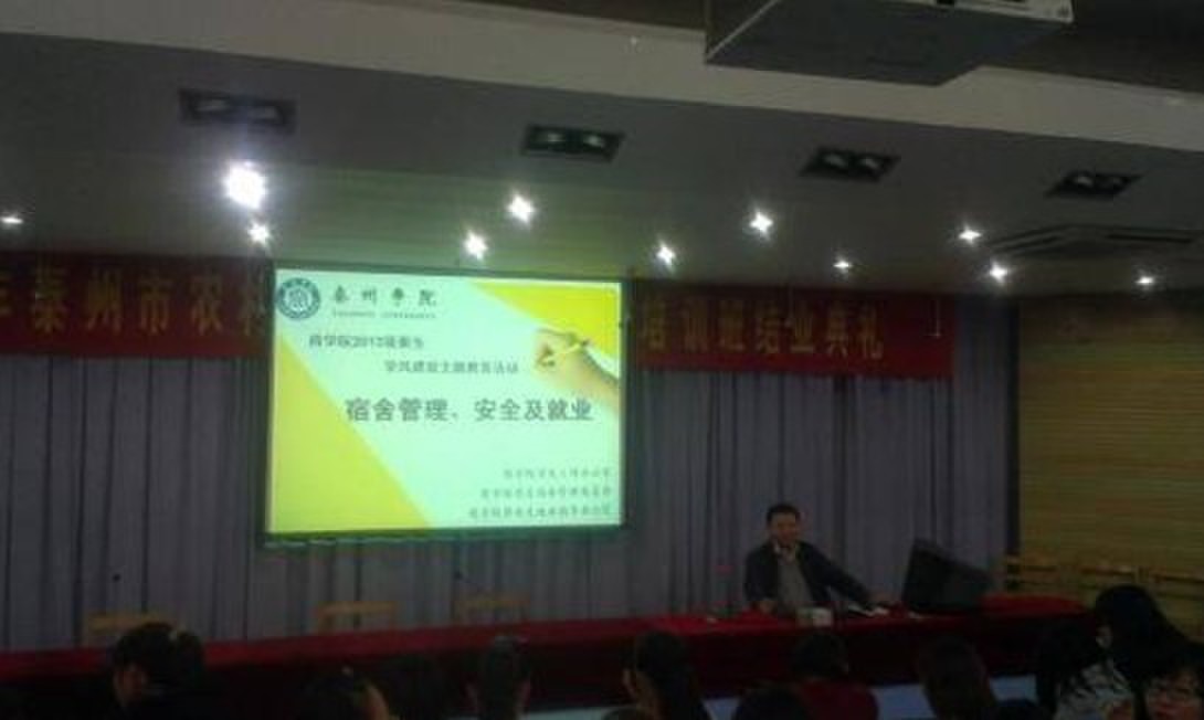 讲座中,仲稳山书记介绍了泰州的历史文化、公司的历史背景、“立德、立功、立言”的校训和“求真、求善、求美”的校风,同时,要求员工更加了解自己的公司,争做“阳光学子”,为社会做出贡献。接着,袁喆老师介绍了商公司员工自治组织以及奖助学金制度等,并要求各位同学能够笃学善思,创新致用,发挥个人特长。