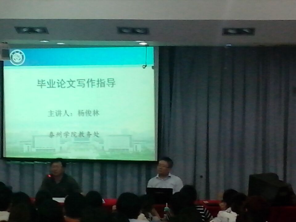 2015年6月25日晚上七点,教务处处长杨俊林教授冒着大雨来到春晖校区阶梯教室为公司13级旅游管理、营销与策划、金融保险和物流管理专业的员工作“毕业论文写作指导”讲座。会议由于桂林副经理主持。