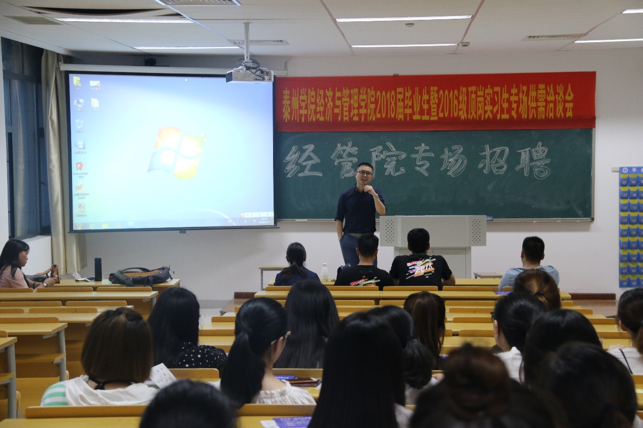为改善毕业生就业心态,做好进入职场的准备公司于5月17日晚上6:00邀请顺丰速运有限公司HR王旭先生,在教学楼3209举行就业创业指导讲座。经管院学工书记刘荣江、员工工作办公室王凯老师、员工就业指导办公室王逸老师、陶亚萍老师及15物流2班同学到场聆听。