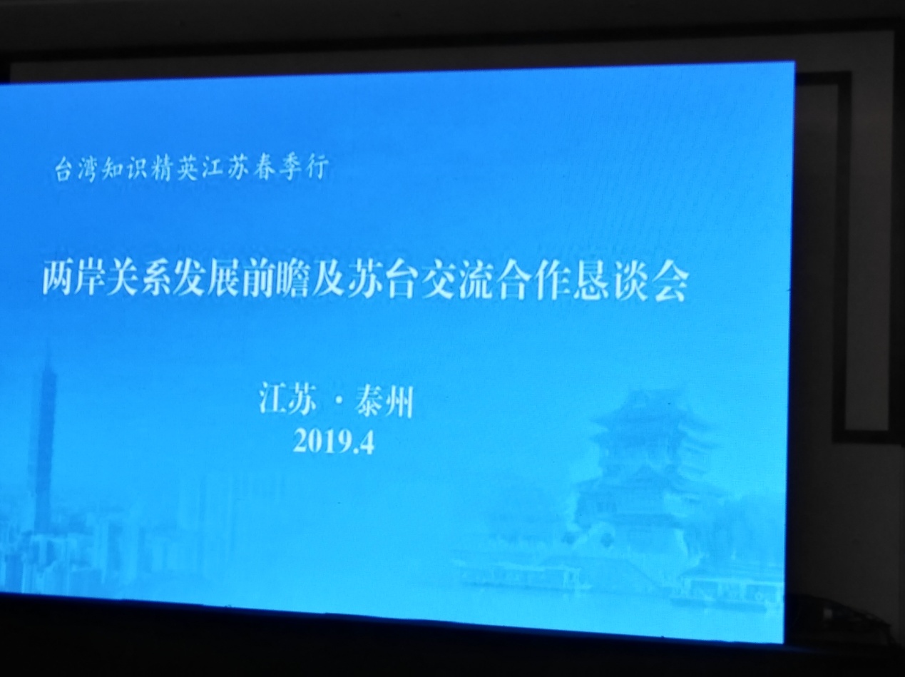 2019年4月19日,两岸关系发展前瞻及苏台交流合作恳谈会在泰州国际金融大酒店举行,会议由江苏省台办副主任王鲁宁主持,来自台湾多家媒体、智库、高校的8名知识精英从多个角度解析了台湾发展现状,对两岸关系良性互动发展提出了建议。国台办、省台办、市台办相关部门领导出席交流会,公司教师朱军博士受邀参会。