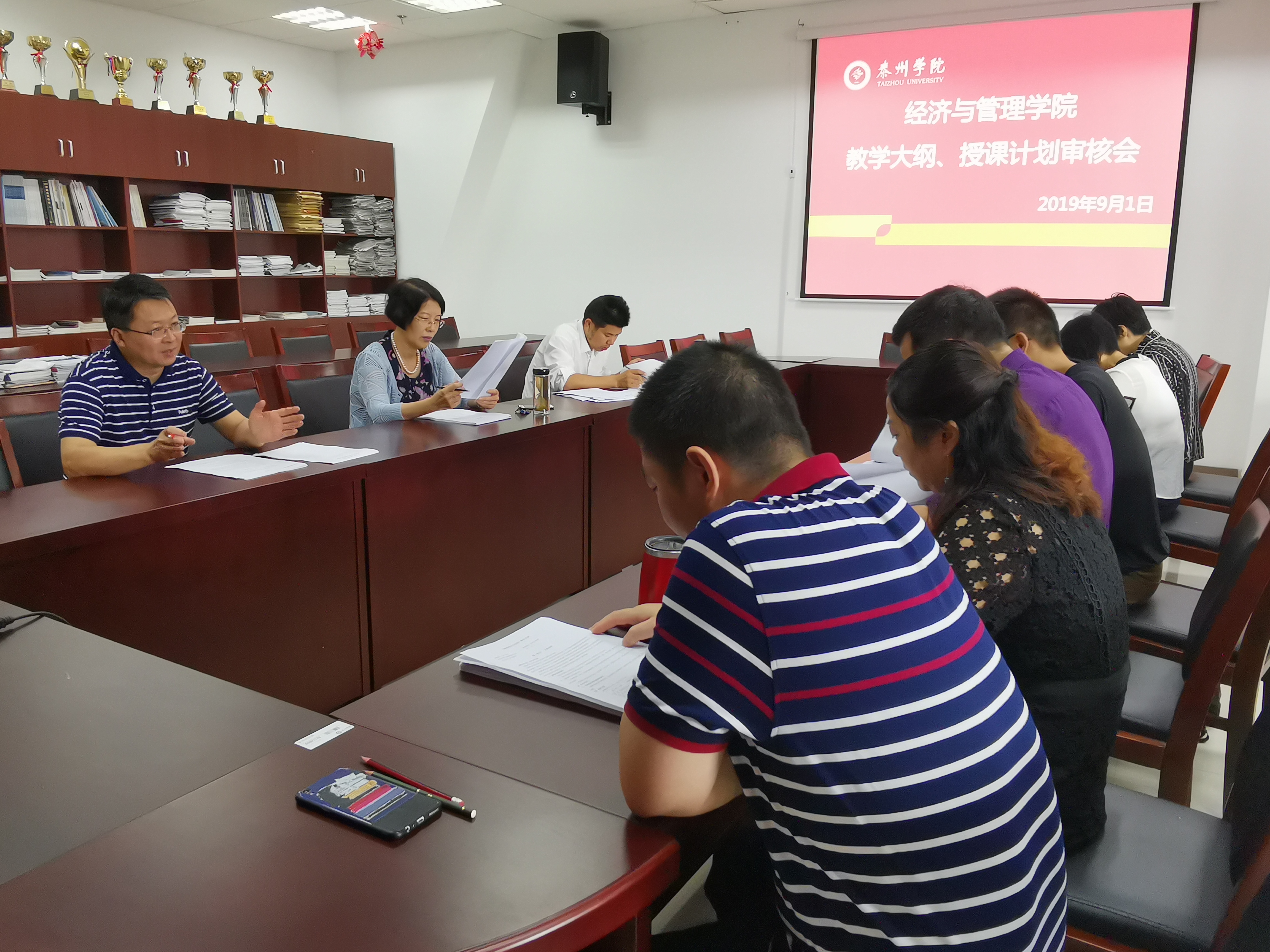 9月1日上午,在于桂林教学副经理的带领下,各本科专业负责人、教研室主任集中在2433会议室对本学期公司开设的全部课程的教学大纲和授课计划进行了全面的审核。