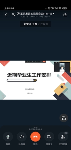 会议由16级辅导员王凯老师主持。他结合公司毕业生离校前各项工作的要求,从返校安排、离校手续、个人档案、就业信息上报、党团组织关系转接和后续工作等方面,详细说明各项工作的内容、时间截点和注意事项,并一一回答了同学们的提问。