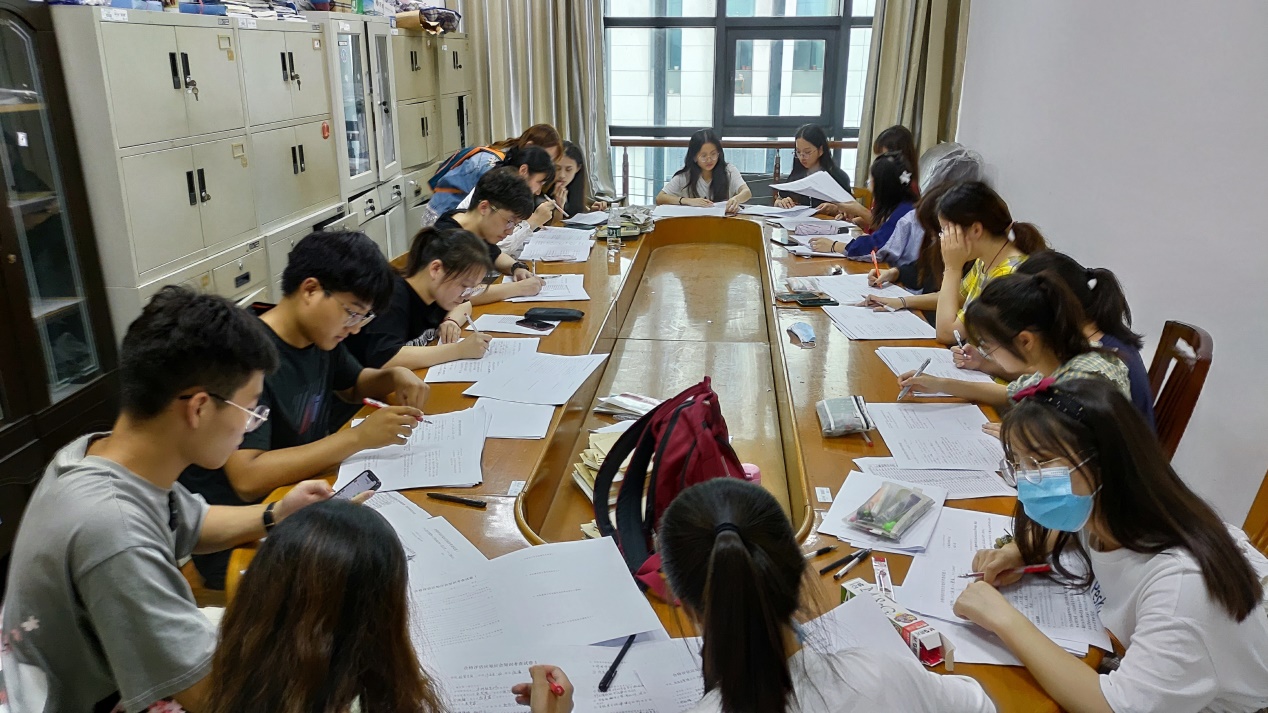 2:30,考生开始答卷。考场上格外肃静,只听见沙沙的答卷声。考试结束后,“小老师”们针对试卷制定一套标准答案,并组织阅卷核定相应分数。