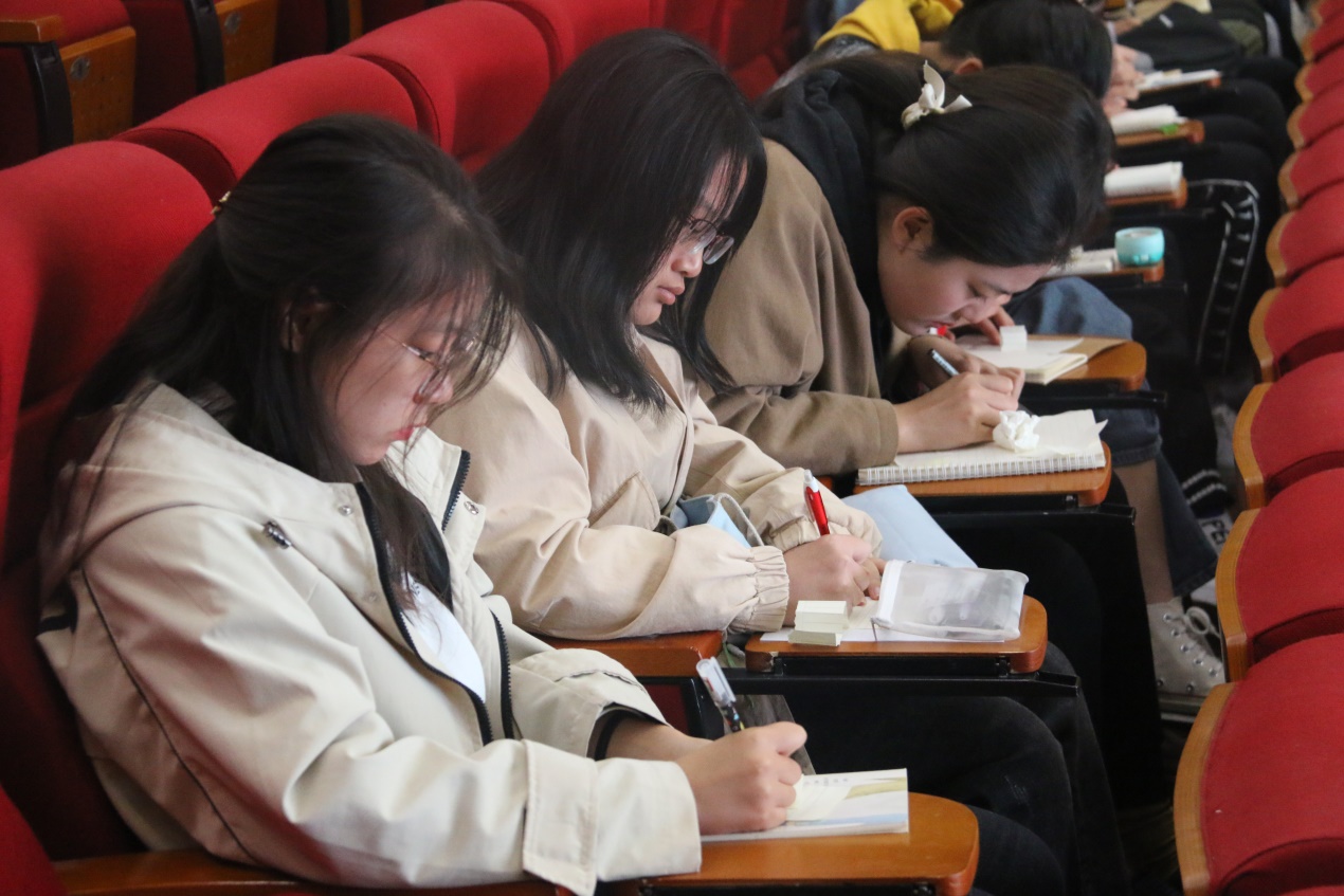 讲座现场同学们认真聆听并做好笔记,讲座结束后同学们纷纷表示自己要认真规划大学四年的学习和生活,争取在四年后呈现一个最好的自己。