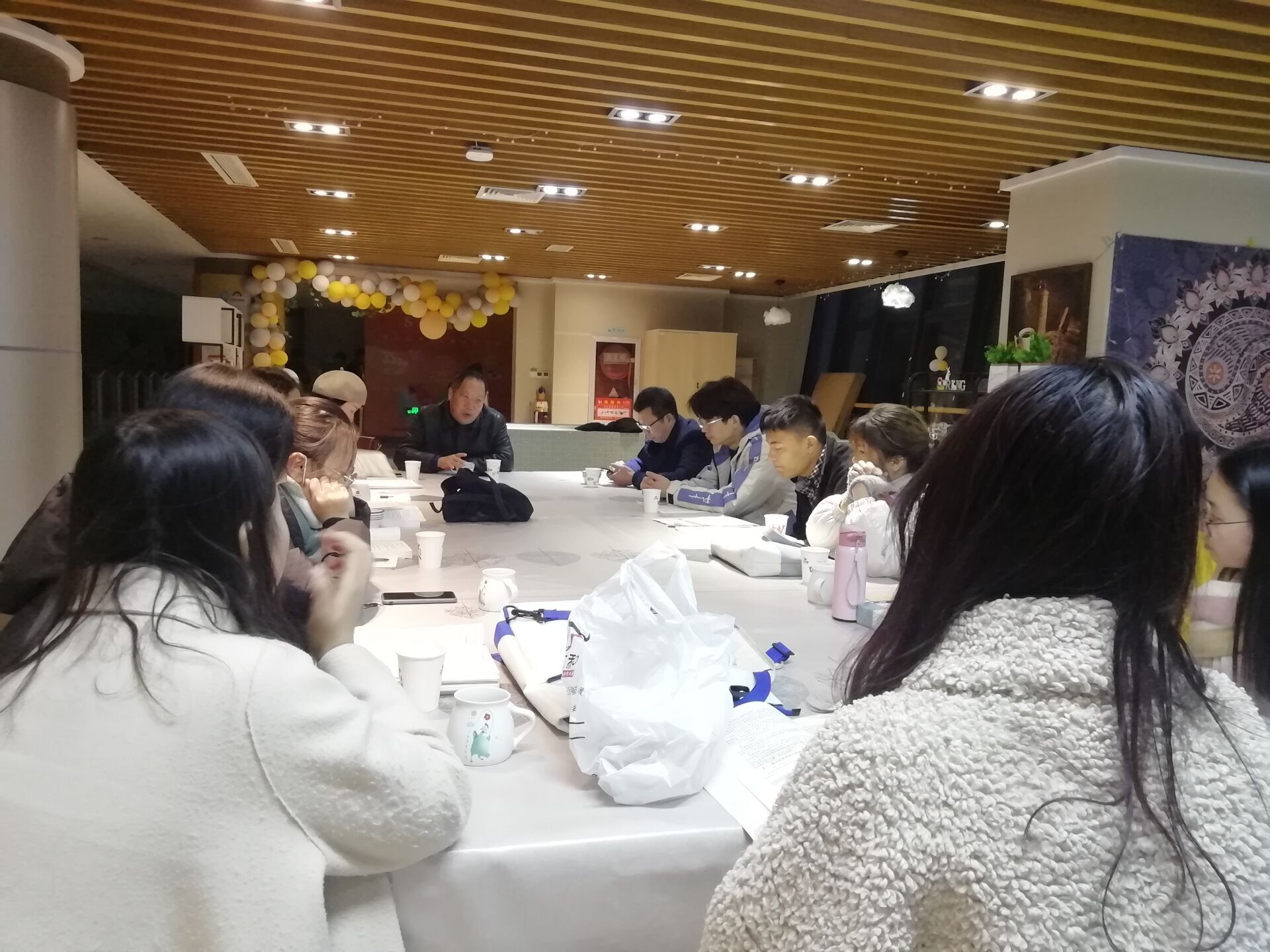 12月3日下午4:20在老员工创业园“37℃ 慢时光”召开公司挂科资助生学业恳谈会。出席会议的有院关工委副主任袁永谦教授、党总支副书记刘荣江、资助辅导员吴慧以及2019--2020学年第二学期挂科资助生。