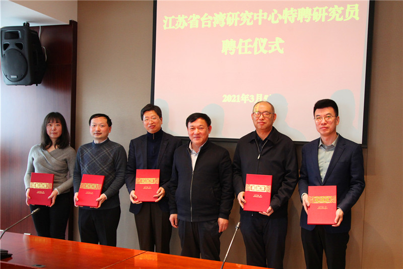 3月5日,江苏省委台办在南京举办两岸形势分析研讨会暨江苏省台湾研究中心特聘研究员聘任仪式。公司朱军博士在内的12名来自省直单位和相关院校、研究机构的同志被新聘为江苏省台湾研究中心特聘研究员。省委台办副主任芮经忠为特聘研究员颁发聘书。他强调指出,省台研中心要紧密结合省委省政府中心工作和江苏对台工作大局,充分发挥特聘研究员所专所长,为推进江苏涉台研究工作服务争当表率、争做示范、走在前列做出贡献。
