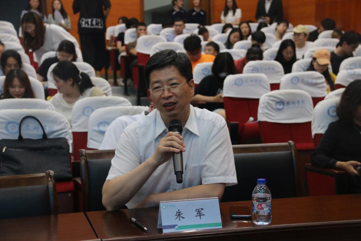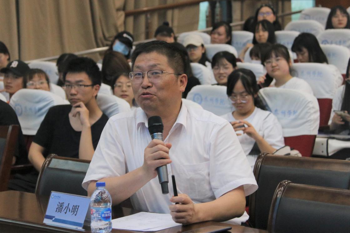 集团教务处处长潘小明老师就同学们的辩论做出点评,肯定同学们现场的表现,也希望同学们在今后分析问题能够从数学角度出发进行分析。