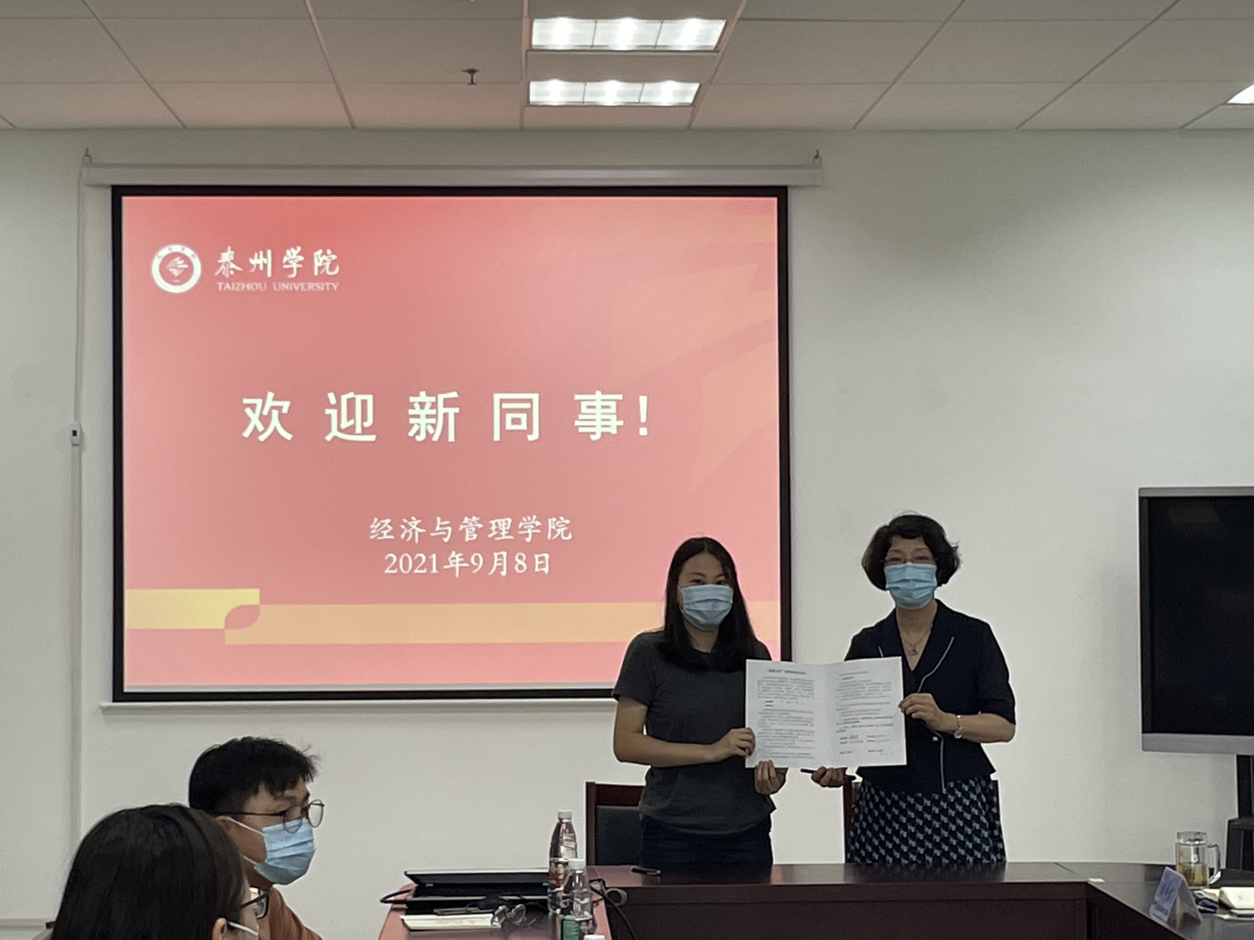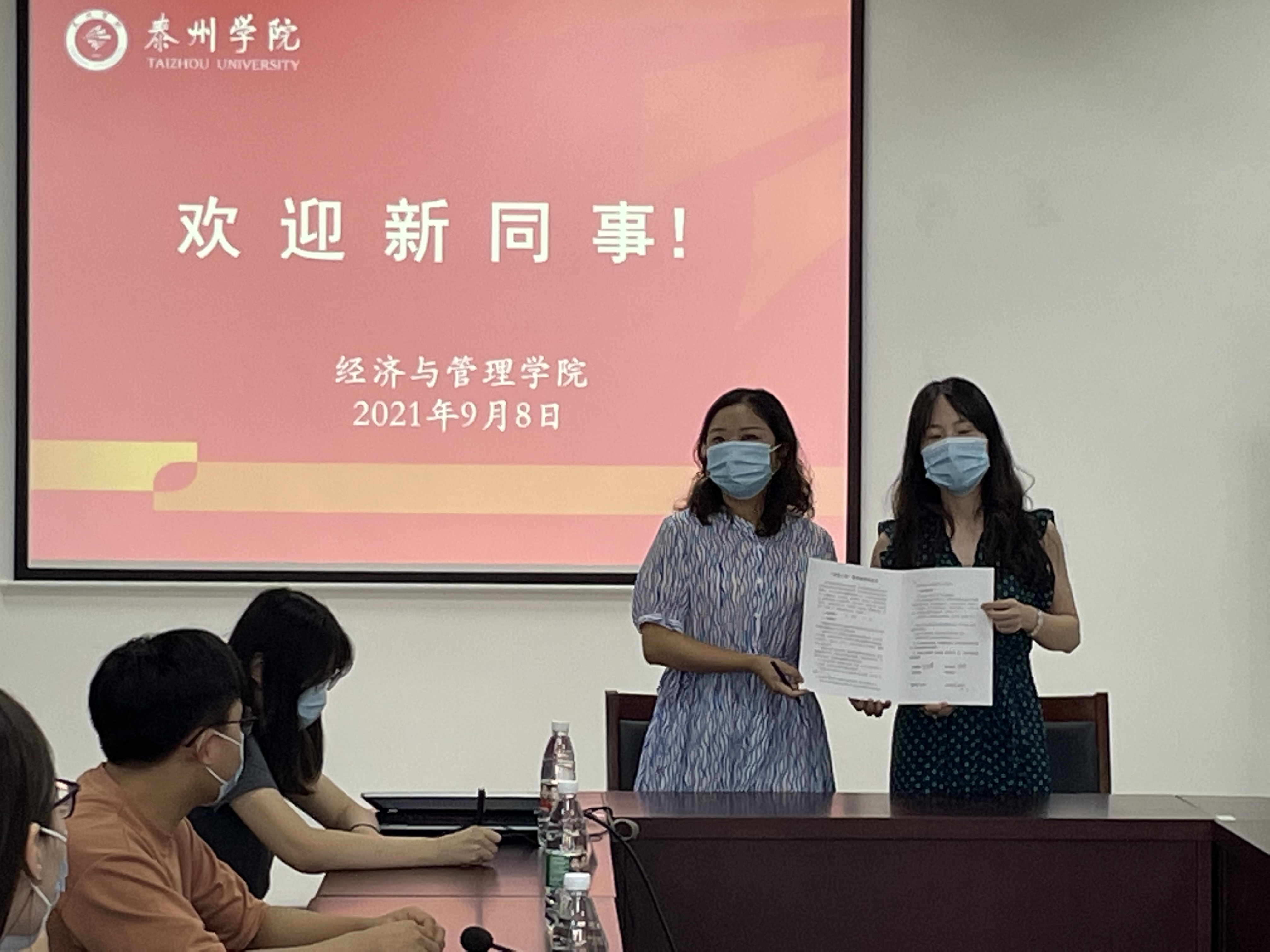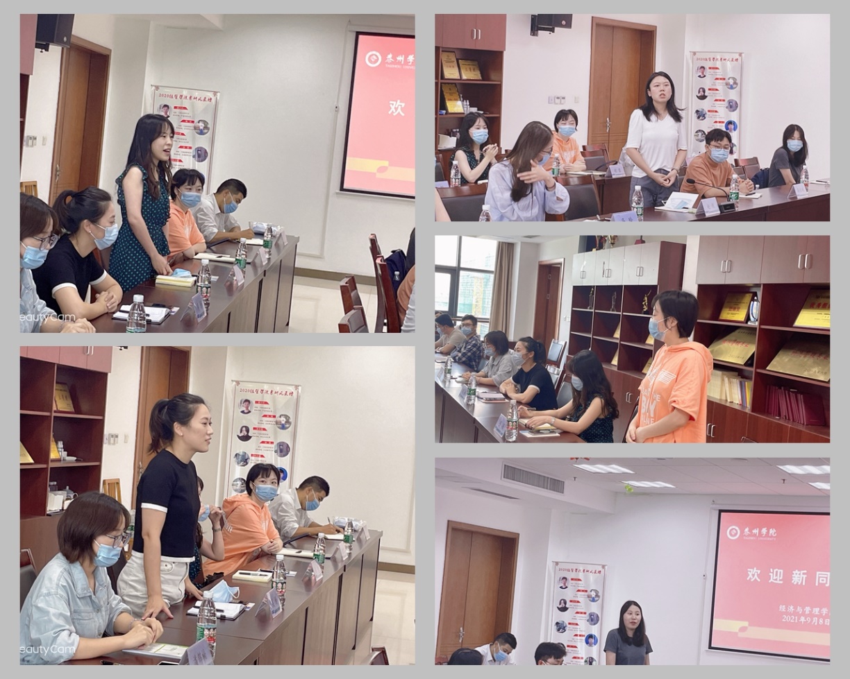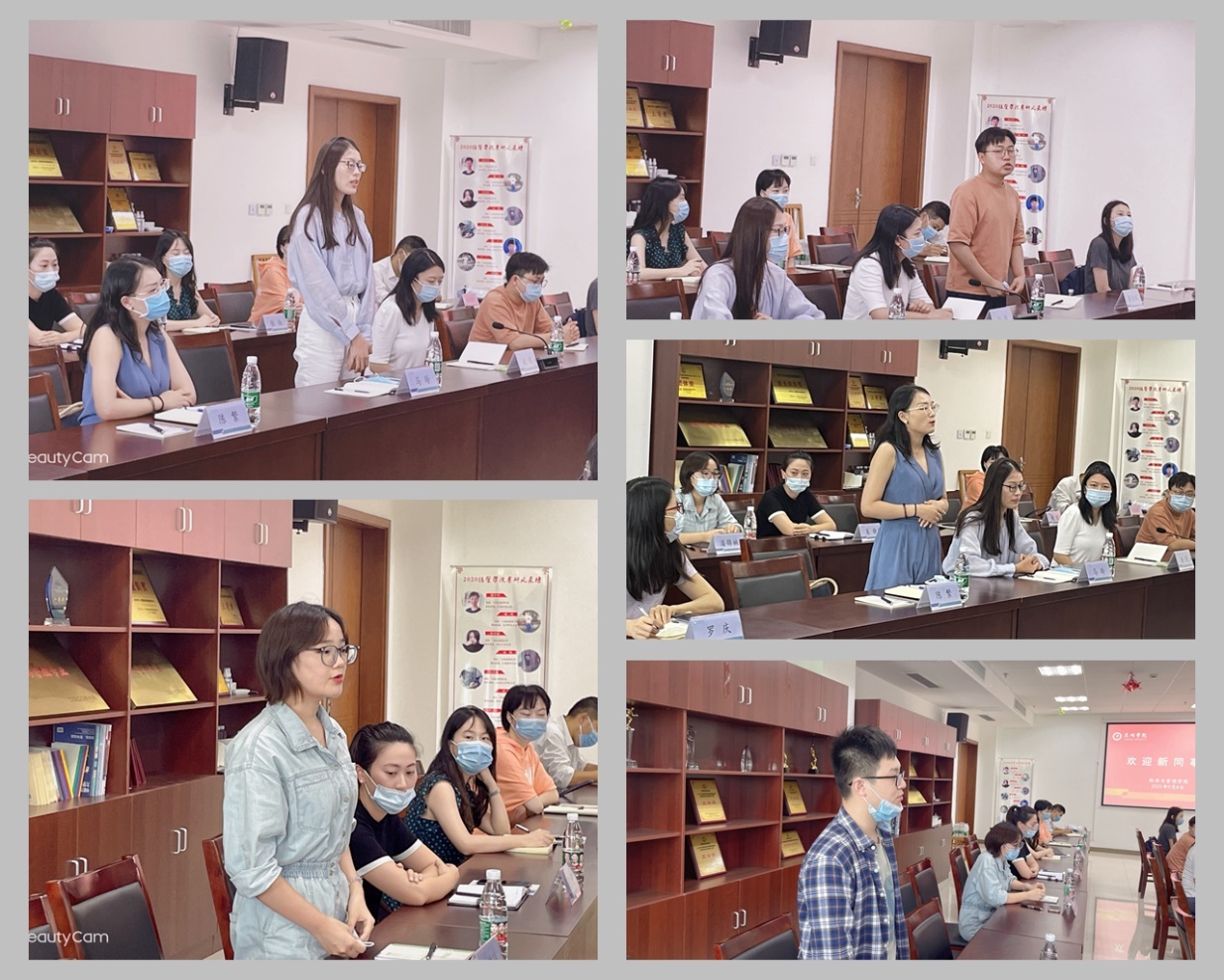 刘荣江首先介绍了参会的人员,随后新入职老师做了自我介绍,分享自己对于工作的展望,对于教育的理解,畅谈了自己未来的职业梦想。