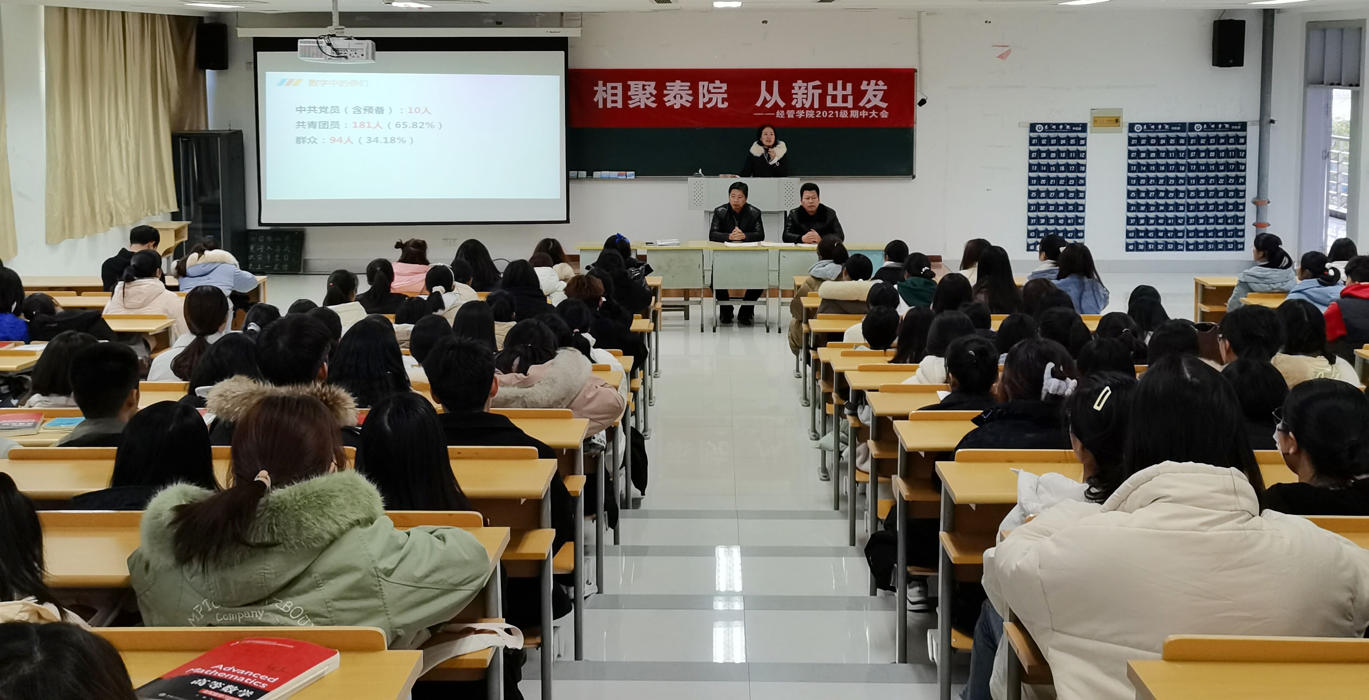 为了加强学风建设,夯实新生入学教育,12月1日下午,公司召开“相聚泰院 从新出发”2021级期中年级大会。275名全日制本科员工、自管会、员工会负责人、年级辅导员参加了本次大会,经理朱军、党总支副书记、副经理刘荣江出席了会议。