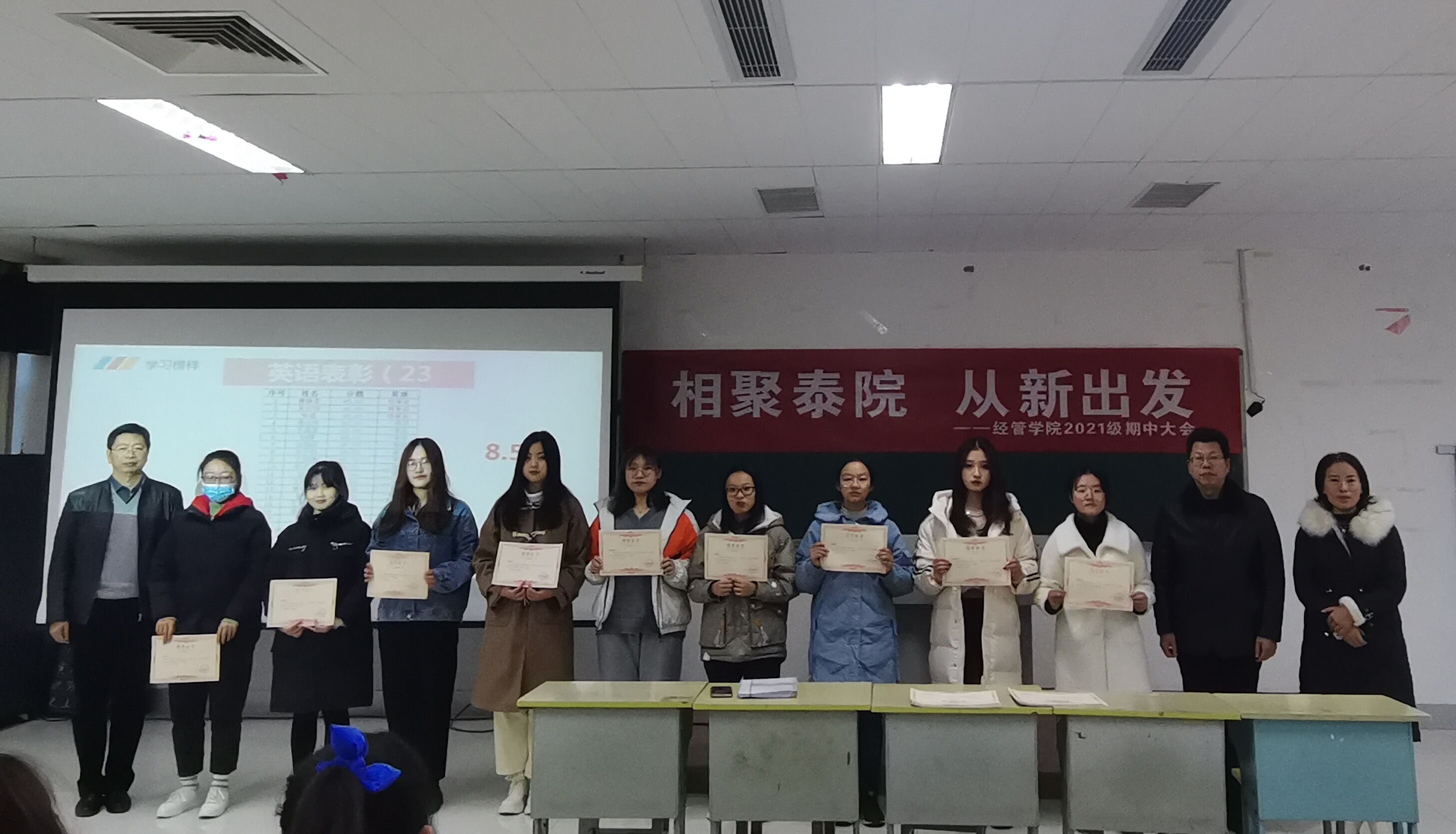 大会分“回眸与表彰”“分享与规划”两个部分。首先年级辅导员通过数据和影像两种方式介绍了年级生源基本情况,回顾入学以来点点滴滴,表扬了同学们在军训中的努力,在校园舞台上展现自我的勇气以及在日常学习中的认真。随后,对期中考试取得优秀成绩的同学们进行了表彰。公司党政领导为员工们颁发奖状,朱经理寄语全体新生,希望同学们能够养成自律的品格,完成向老员工的转换。利用好各类学习资源和平台,夯实高数和英语两门基础课,不断增强知识技能,助力未来人生发展。
