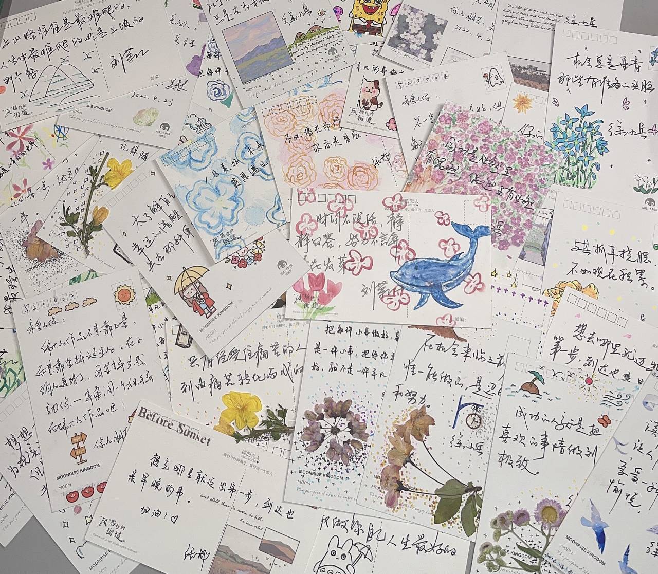 随后,在破冰的欢乐气氛中,四十余名同学分享了心中“第一书”。《你当像鸟飞往你的山》、《追风筝的人》、《文化苦旅》、《撒哈拉的故事》、《山月记》、《穷查理宝典》、《丰乳肥臀》等等一批名家名著被分享,师生们被风格迥异的好书深深吸引,沉浸在精妙深邃的文学世界。游戏、才艺表演、星空夜谈将气氛推向高潮,老师们亲笔撰写、员工们彩绘的明信片为同学们送上了一份诚挚的关怀。欢声笑语萦绕在宁静的校园之夜,涤荡了疫情带来的阴霾。
