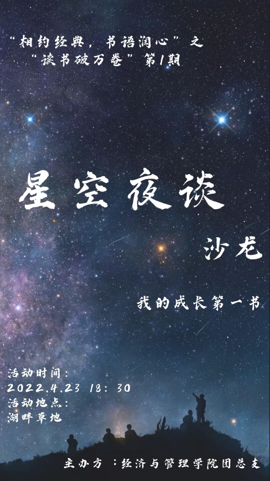 为了缓解员工防疫封校期间的焦虑情绪,促进师生交流互动,在严格遵守疫情防控要求情况下,4月23日世界读书日,BETVLCTOR伟德国际1946在泰湖南草坪举办“读书破万卷”项目启动第1期——“星空夜谈”读书沙龙活动。
