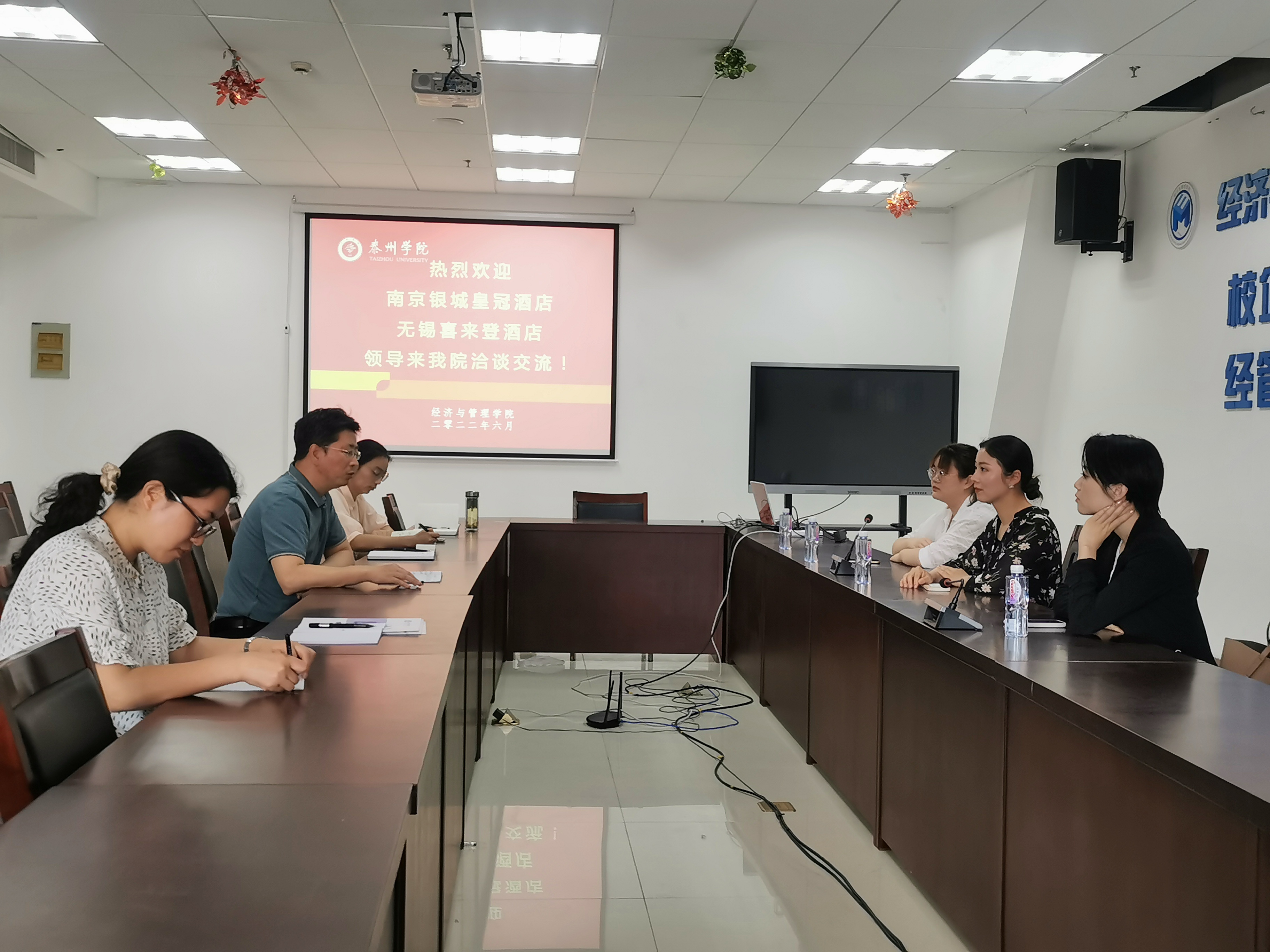 6月8日上午,旅游管理专业实习基地代表——南京银城皇冠假日酒店及无锡富力喜来登酒店来公司交流。公司经理朱军、双创办主任唐宇及部分专业教师代表参加了会议。