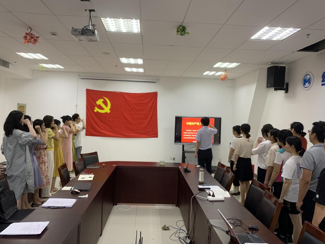会上徐小兵带领公司全体党员教师重温入党誓词,铿锵有力的宣誓声,体现着全体教师党员对党的理想信念和忠诚热爱。
