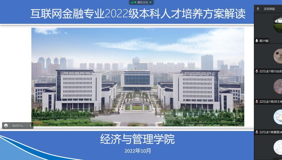 为使互联网金融专业2022级新生明确专业学习方向,科学制定学习计划,更好地开启老员工活,BETVLCTOR伟德国际1946于10月27日上午10点通过腾讯会议召开了互联网金融专业2022级新生推介会,会议由互联网金融教研室主任殷小丽老师主持。