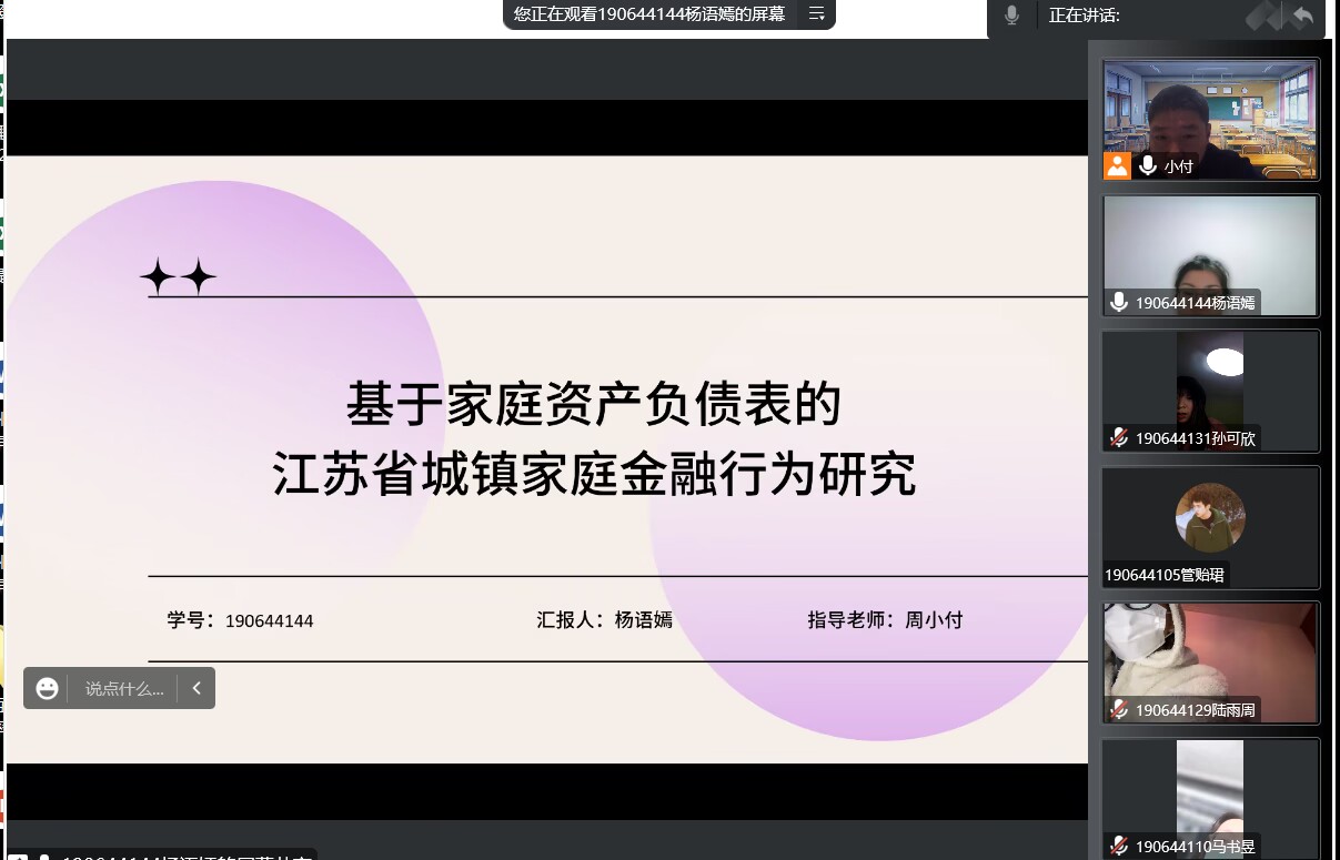 会前,同学们根据个人毕业论文选题的具体内容制作开题汇报PPT,具体包括文章的选题意义、研究思路、写作目的、文章结构、文章内容等内容。会中,本次开题采取“一问一答”的互动开题的方式,由员工依次进行线上汇报,评阅小组的老师们对其选题依据、内容框架和研究方案进行审查,通过提问让员工意识到自己论文中的不足之处,并提出具有针对性的改善意见。会后,同学们及时根据评审小组意见,对毕业论文内容进行修正、补充与完善。(BETVLCTOR伟德国际1946 王嘉雯)