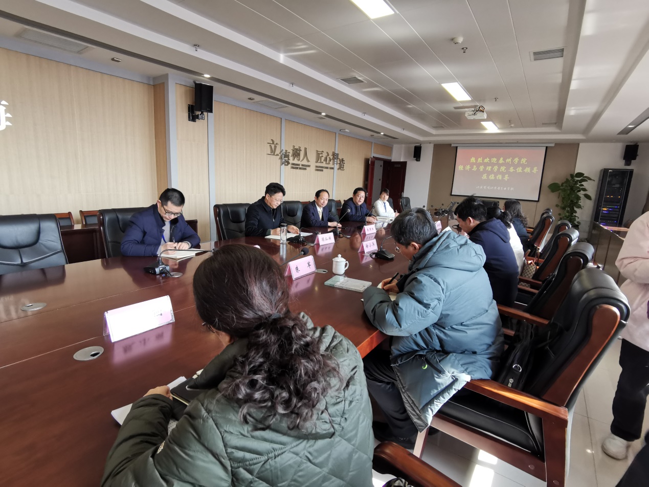 朱照红首先对公司一行的来访表示热烈欢迎。顾灿兴介绍了2023届会计专业(前段)和公司互联网金融专业(后段)“3+4”项目的具体情况。朱军简要简要介绍了公司的办学历史和近年来取得的成果。双方就员工非常关心的转段考试方案、就业与升学等相关问题进行了深入交流。