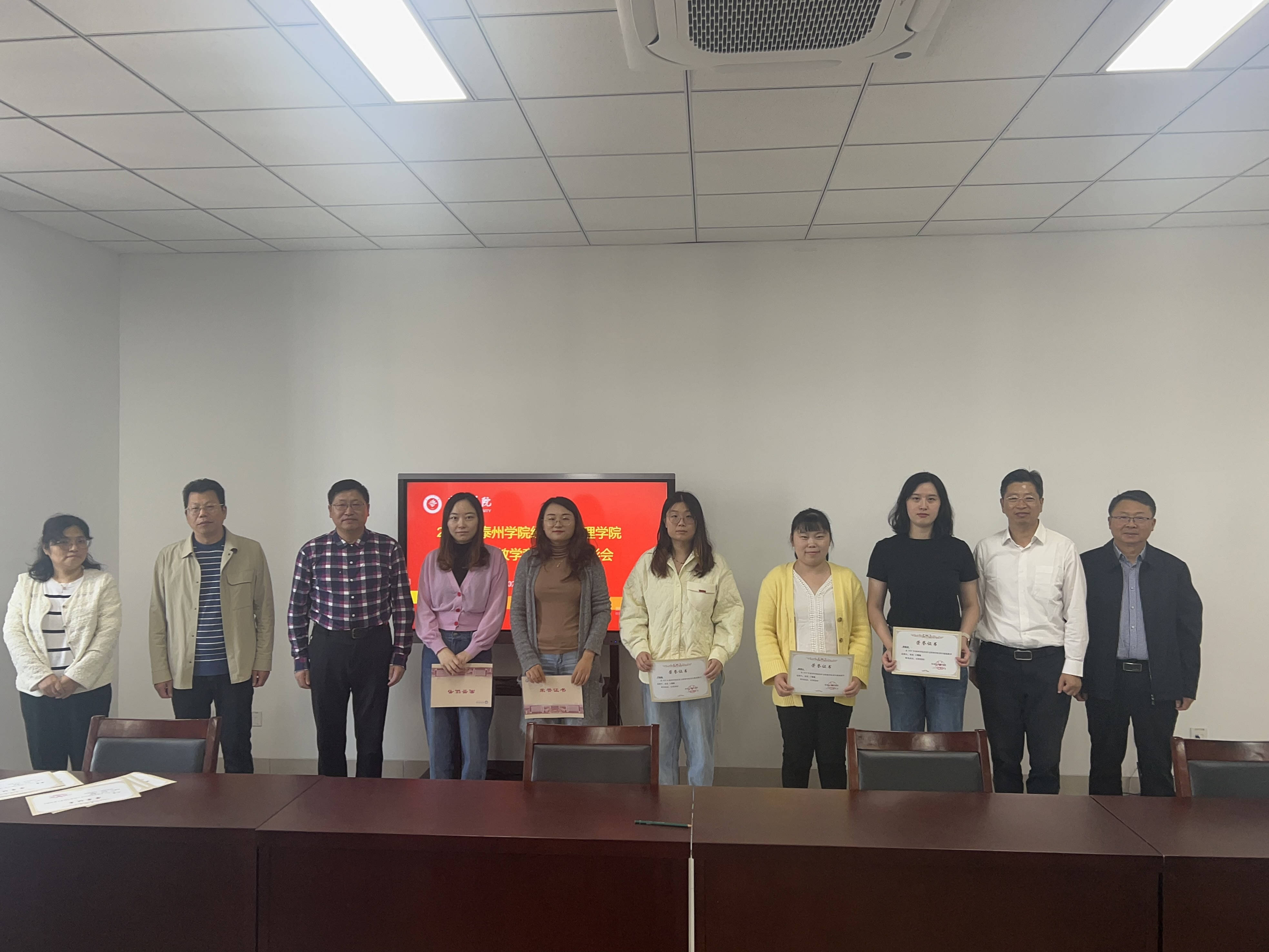 会议当天,经管院副经理李露公布了获奖教师名单。公司教务处处长潘小明、BETVLCTOR伟德国际1946院领导亲自为获奖老师颁发荣誉证书并表示祝贺。