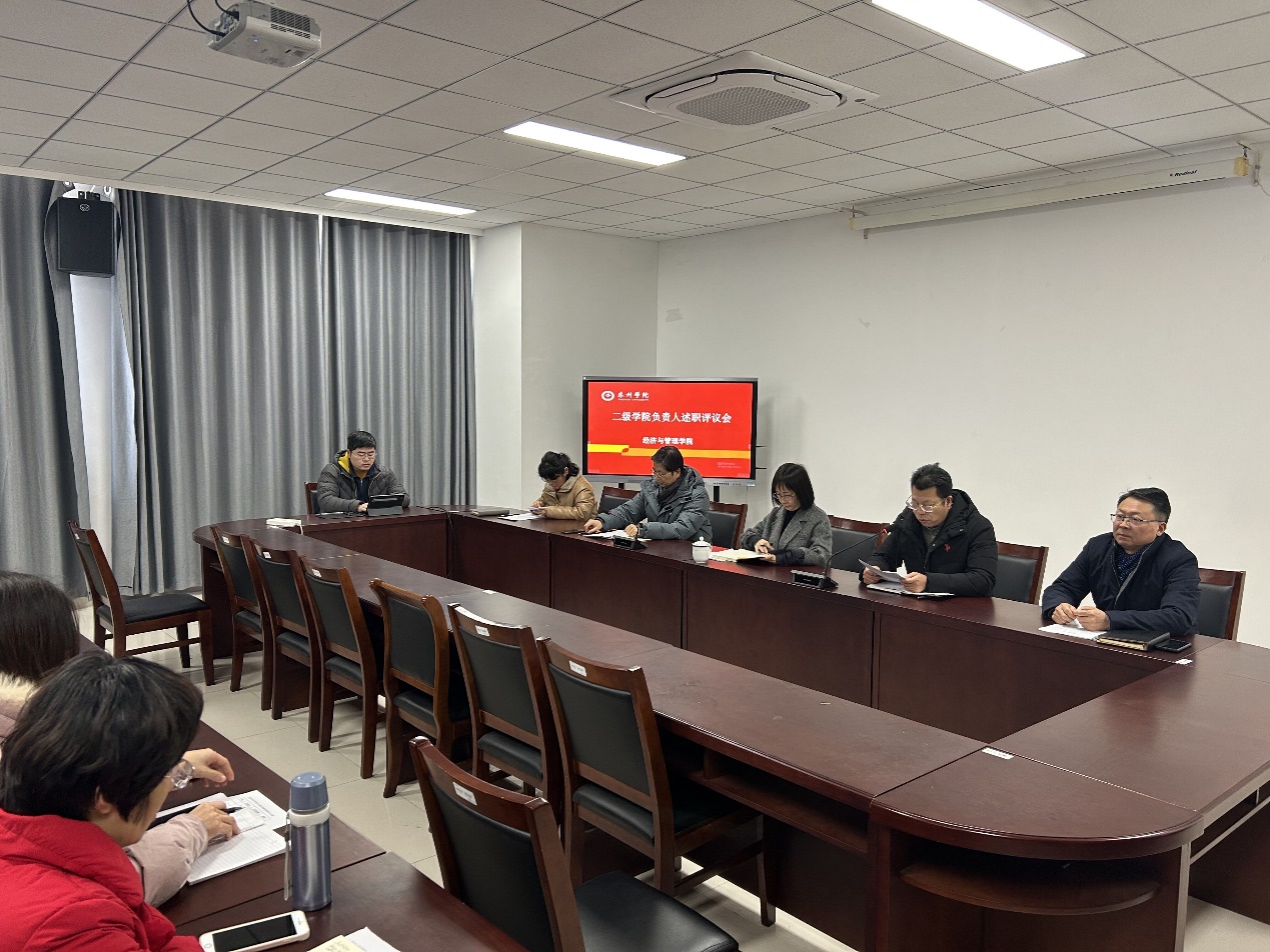 1月10日下午,BETVLCTOR伟德国际1946在教学综合楼G2502举行公司负责人述职评议大会。会议由经管公司党总支书记刘荣江主持,副董事长卜慧芬、经管院经理朱军、经管院副经理于桂林、经管院副经理李露、学工处王逸及经管院全体教职工参加会议。