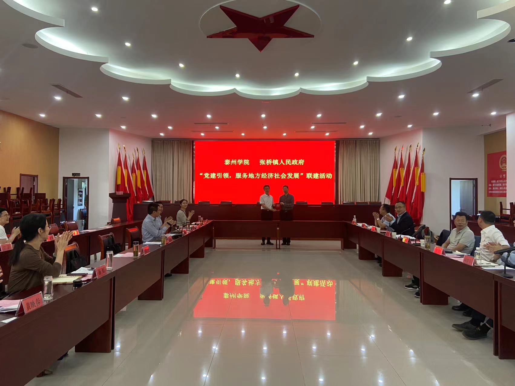 5月16日下午,公司党总支书记黄彬、经理朱军带领数字经济、旅游管理教师党员,赴泰兴市张桥镇开展“党建引领,校地共建,服务地方经济社会发展”活动。张桥镇党委、政府领导班子全体成员参加了活动。活动由张桥镇党委副书记、镇长杨炳庚主持。