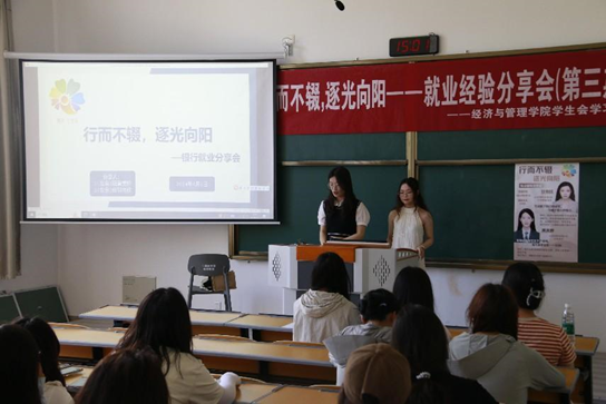 活动前,两位学姐分别进行了简短的自我介绍,并对所在银行的工作做了简单概括。首先,黄美婷学姐从信息获取渠道为切入点,分享了自己获取就业信息的多种渠道,提醒同学们不要局限于单一途径寻找,要多方面多平台寻找适合自己的企业,大胆投递简历。接着,甘雨欣学姐结合自身经历告诉在座的同学如何做好就业的前期准备,比如通过互联网平台了解感兴趣的银行或其他各类企业、积极参加专业相关实习,为自己的履历锦上添花。最后,两位学姐还介绍了简历投递具体流程和注意事项,强调在投递过程中要注重细节,还将笔试与面试过程中汲取的经验、资料、技巧、注意点向同学们分享,同学们受益匪浅。
