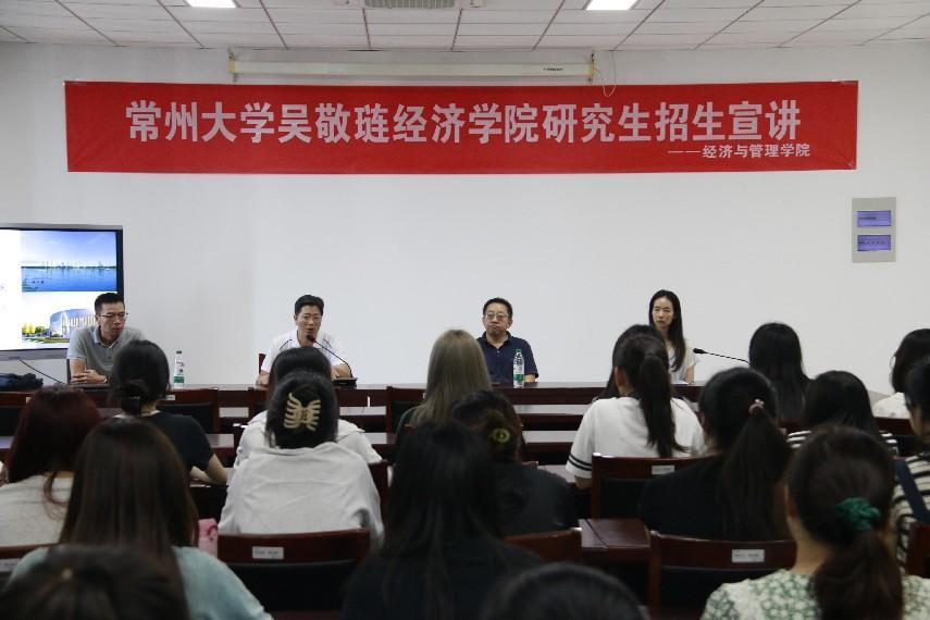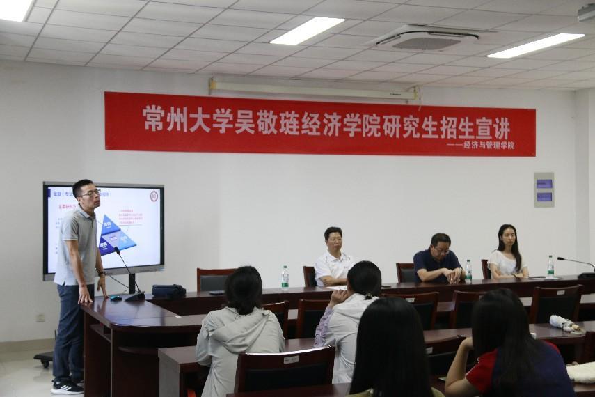 在宣讲会上,朱军经理对姜国刚经理一行的到来致以最热烈的欢迎。姜国刚经理为在场同学进行了精彩的研究生招生宣讲,其重点聚焦于常州大学吴敬琏经济公司的发展历程、团队建设成果、光明未来前景以及丰厚奖学金等四个方面内容,并耐心地解答了现场同学关于研究生报考的诸多疑问。