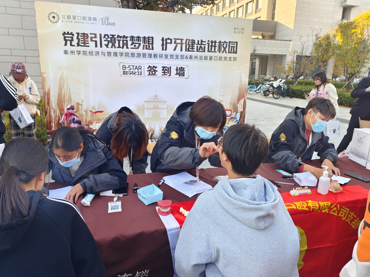签约仪式结束后,两个党支部共同为公司师生开展了“党建引领筑梦想,护牙健齿进校园”的义诊服务活动,以实际行动传承和践行雷锋精神,发挥基层党支部的战斗堡垒作用和党员的先锋模范作用。