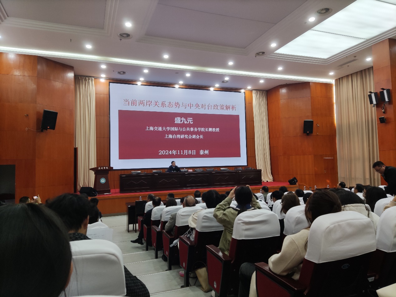 本次活动邀请了上海交通大学国际与公共事务学经理聘教授、上海交通大学台湾研究中心主任、博士生导师盛九元(曾任上海社会科公司台湾研究中心主任、世界经济研究所研究员)作《当前两岸态势与重要对台政策解析》专题报告,报告重点聚焦两岸关系,从中美博弈、国际格局演变、新时期对台政策等角度展开分析。本次活动拓宽了师生视野,坚定了师生对祖国必将统一的信心。