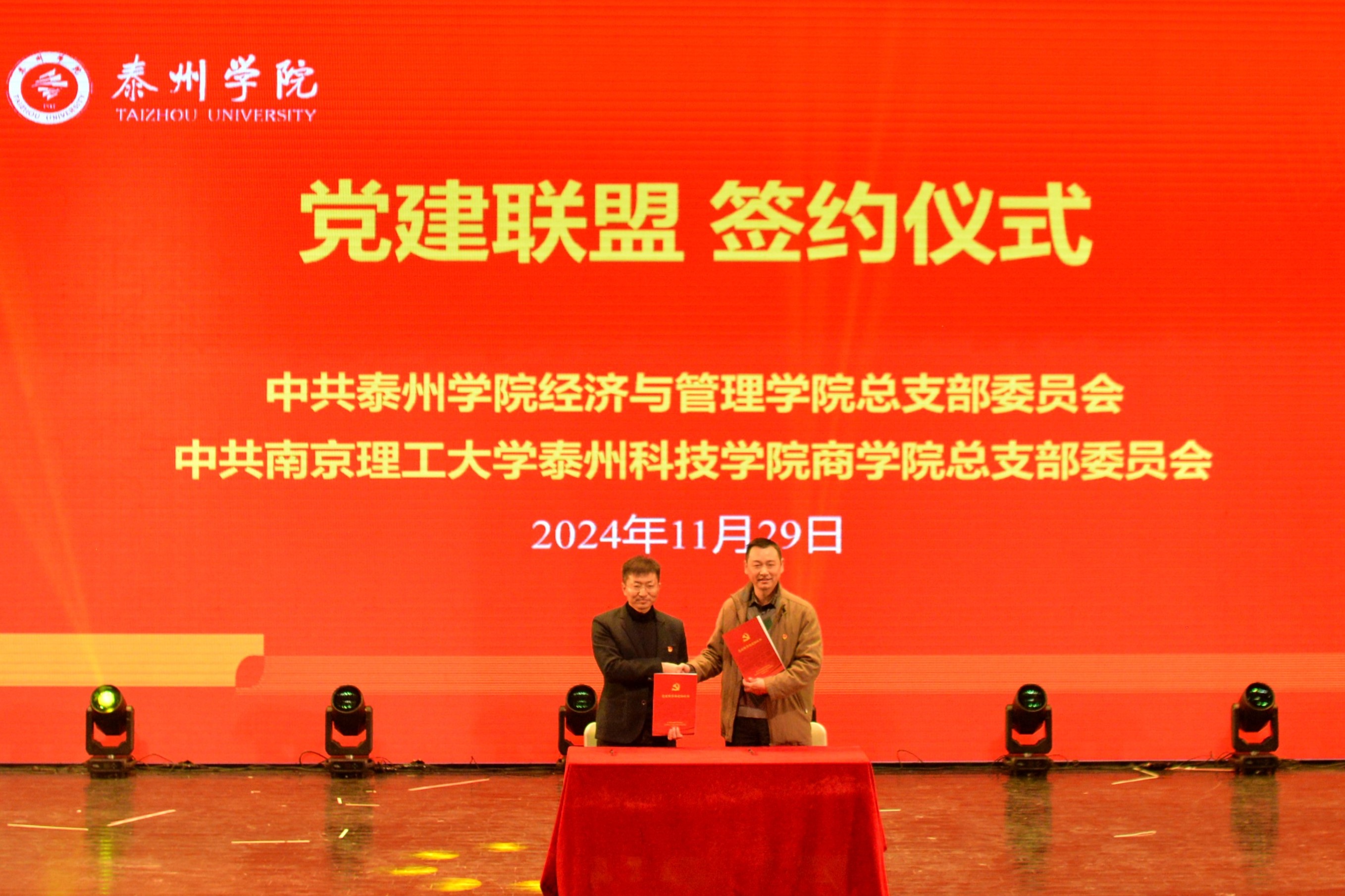 晚会期间,为进一步增强基层党支部的凝聚力和战斗力,BETVLCTOR伟德国际1946公司党总支书记黄彬和南京理工大学泰州科技公司商公司党总支副书记陈小强作为双方公司代表进行了党建联盟签约仪式,这将进一步推动校际合作,实现“支部共建、共谱新篇”。