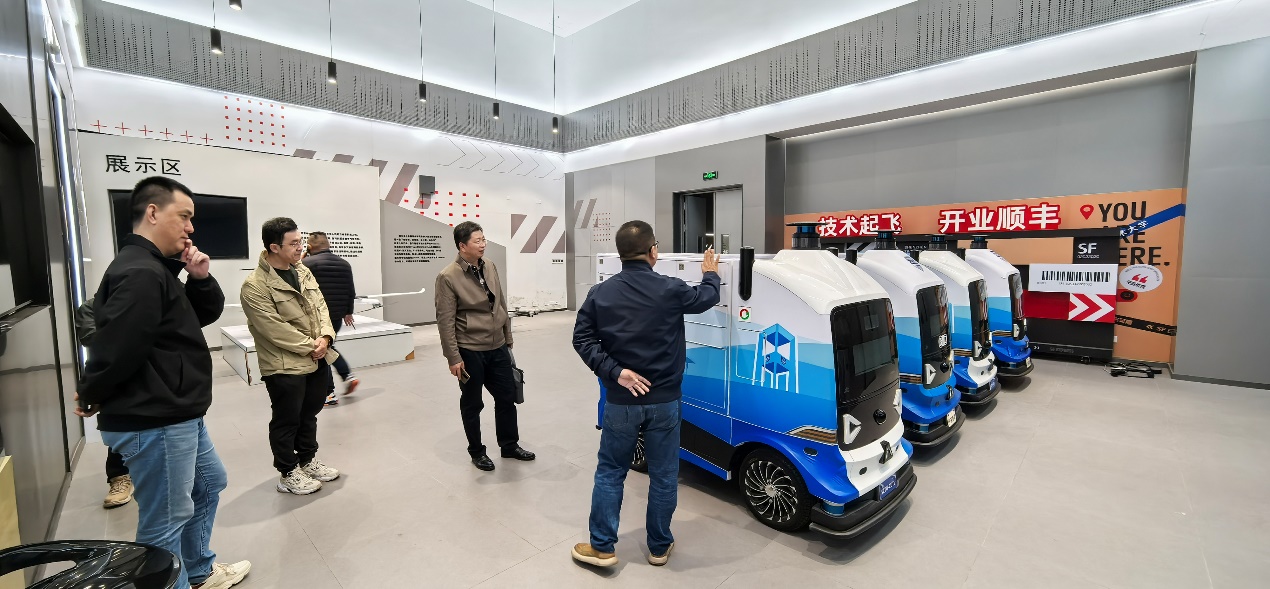 顺丰科技校园项目负责人柳宗光、顺丰科技行业解决方案部售前方案高级顾问潘迪华、江苏顺丰苏中区校园项目运营部负责人蒋映接待了朱军一行。在深圳技术大学城市交通与物流公司顺丰智慧物流实践基地,柳宗光详细讲解了校园项目中的制度建设、校企双方的责任分工、人才培养模式、“车-路-云”一体化关键技术研发、无人机和无人车物流的融合应用等,并现场演示了笼式无人车的自主行驶和装卸。在丰翼宝安低空智慧物流运营中心,潘迪华介绍了运营中心的功能、场地布局、无人机的关键技术、型号和产业应用场景,并演示了方舟40无人机、Manta Ray魔鬼鱼无人机的起降,物流网络“干-枝-端”一体化下方舟40无人机与接驳柜、无人车的接驳。在交流中,双方一致认为:在新技术环境下,产教融合要探索创新的项目建设和运营模式,制度设计上能有效激励校企协同开展人才培养、队伍建设、课程开发、专业建设、团队建设和科技创新;在实施过程中,应紧扣地方经济社会发展需求,以校企合资、合作建设的有特色的生产性产教融合平台为核心,打破校园围墙,实现市场化、专业化、项目化运作,面向中小微企业、社会公众开放服务,产生广泛的社会效应。