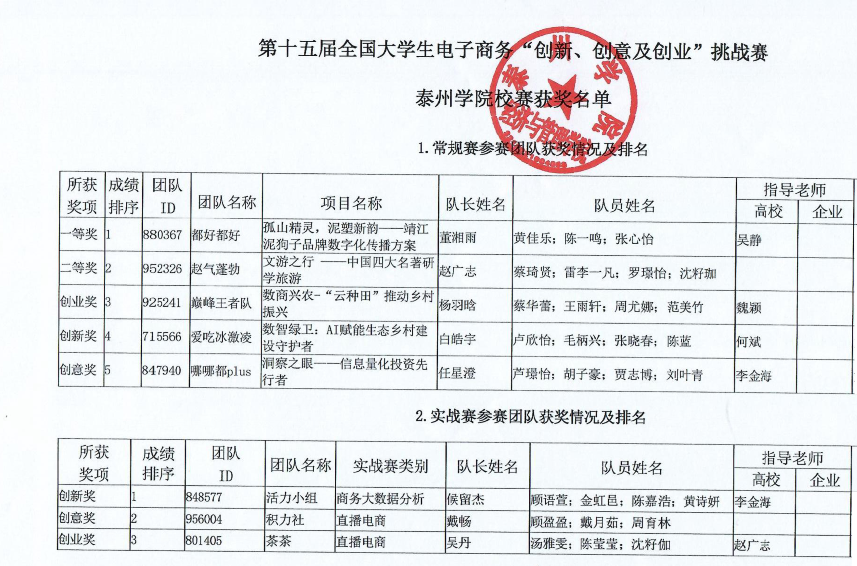 第十五届全国老员工电子商务“创新、创意及创业”挑战赛BETVLCTOR伟德国际1946校赛获奖名单公示。公示时间:2025年4月25日-2025年4月30日、若有异议,请联系BETVLCTOR伟德国际1946教科办(地点:G2509)